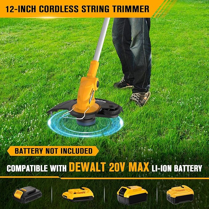 Cordless String Trimmer Compatible with Dewalt 20V Battery, 12-Inch Weed Wacker Cordless Auto Line Feed,Electric Weed Eater Battery Powered Grass Trimmer w/2 Line Spools(Tool Only)