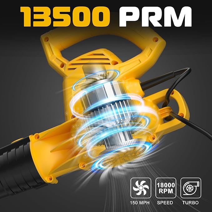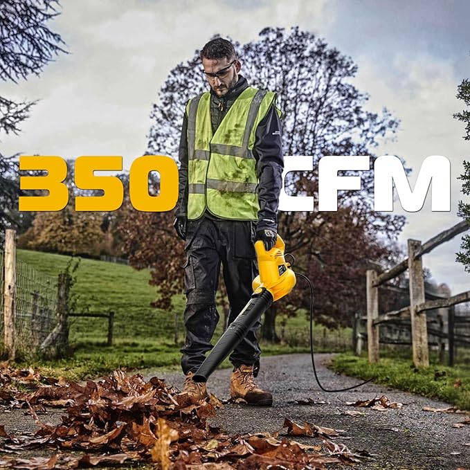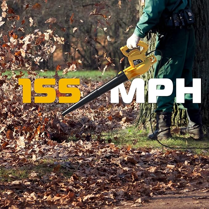 - POWERFUL POWER: The electric leaf blower is powerful, in the strongest mode it can reach the wind speed of 350 CFM and the airflow of 155 MPH, with the push of a button to start the corded leaf blower, you will get the maximum wind speed to help you get the job done quickly.