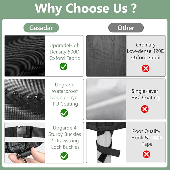 - 【Durable Fabric for All-Season Patio Sectional Couch Cover】Our patio furniture covers are made of 600D heavy-duty Oxford fabric, which is tough and tear-resistant. The UV-resistant covers can protect your outdoor table and chairs from rains, snows, dirt and sunlight throughout the year. You don't have to worry about your outdoor furniture; just cover them with Gasadar outdoor furniture covers.
