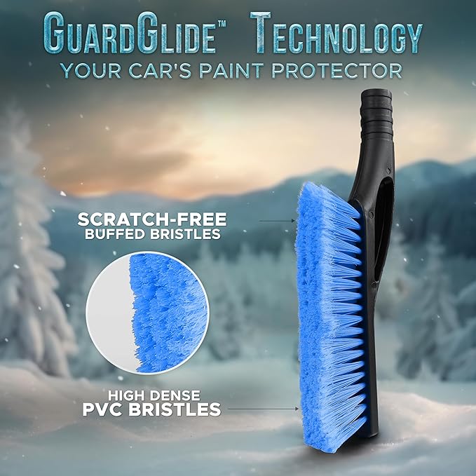 - Efficient Ice Scraper: Each brush features an ice scraper for car windshields made from ABS plastic, designed to quickly remove frost, ice, and snow without scratching your vehicle’s surfaces.