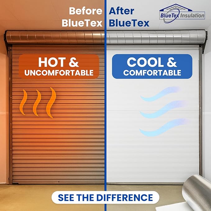 - DESIGNED FOR ROLL-UP GARAGE DOORS: The BlueTex Roll Up Door Insulation Kit is specially designed for commercial style roll up garage doors. It acts as a radiant barrier to cool the interior of your metal building.