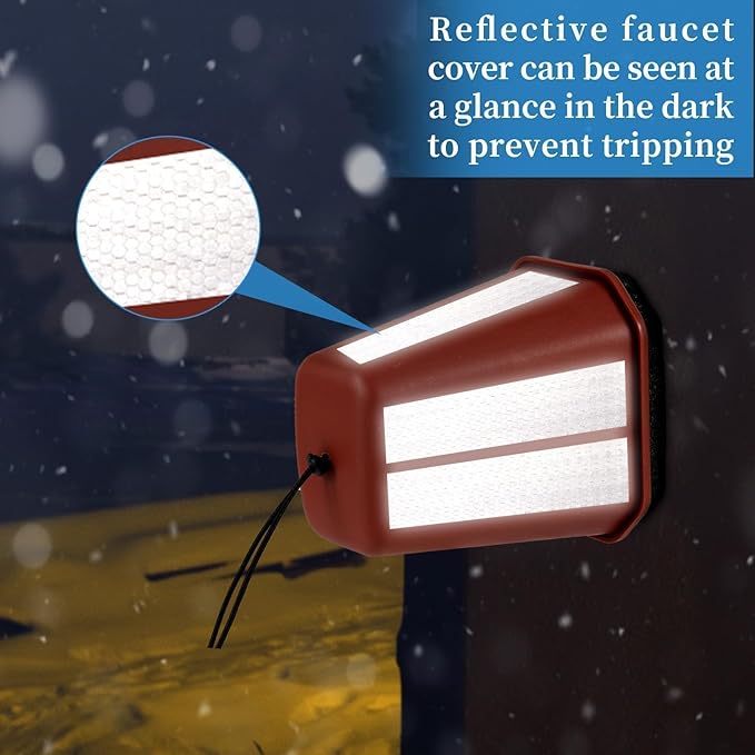 - 【Large Faucet Cover with Reflective Strips】: You will get 4 pack large outdoor faucet cover with a size of 8.5 x 7 x 5.5 inches. The large size allows them to fit various faucets, even if your water faucet is far from the wall. Equipped with 4 reflective strips, you can place them as needed, ensuring easy visibility at night and preventing tripping.