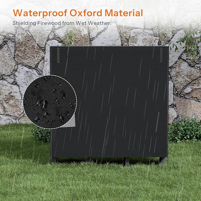 - Weatherproof Oxford Cover: The PVC-coated 600D Oxford cover helps shield firewood from external elements. With self-adhesive strips, zippers, and bottom straps for multiple fixation options, it ensures convenient firewood storage and retrieval