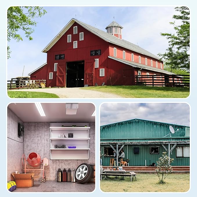 - Easy Installation: Our wall mounted exhaust fan comes assembled and ready to install out of the box, no wiring required, plug and play. Easy to install in garages, workshops, chicken coops, sheds, attics, greenhouses, offices, hospitals and theaters.