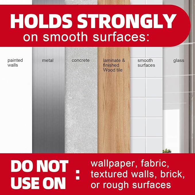 - DAMAGE FREE WALL HOOKS: Say goodbye to holes and wall paint off. The adhesive hooks for walls are very easy to use and remove. Excellent performance on painted walls, wood doors, ceramics, glasses, plastic, metal surfaces.