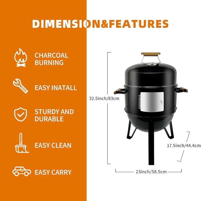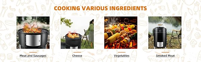 - ADJUSTABLE TEMPERATURE CONTROL: Equipped with adjustable air vents and a Built-in thermometer, allowing precise control of heat levels for grilling, slow cooking, or smoking your favorite meats
