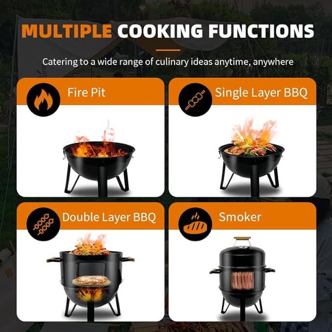- 4-IN-1 GRILL AND SMOKER COMBO: Features a multi-layer cooking grate and enclosed lid design to deliver rich, smoky flavors—ideal for ribs, brisket, chicken, and more