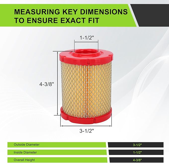 - Air filter Compatible with Cub Cadt MTD Troy Bit Craftsman Husky Lawn Mower Tractor; Replace # MTD 937-05066 737-05066; Dimension: Outside Diameter:3-1/2", Inside Diameter:1-1/2", Overall Height:4-3/8"(Measurements do not include pre filter).