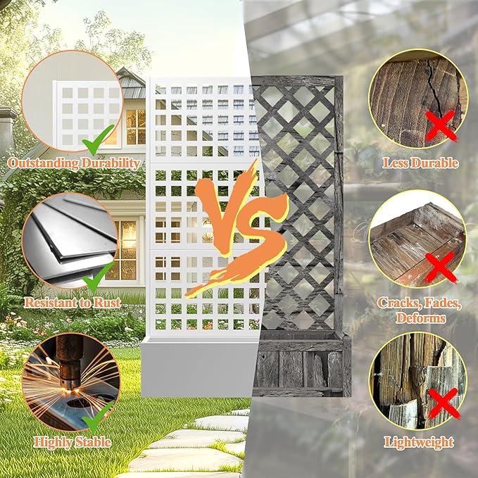 - Space-Efficient Design: Combining a planter box with a trellis, this product offers a space-saving solution ideal for gardening in limited spaces, allowing you to create a beautiful vertical garden even in small areas.