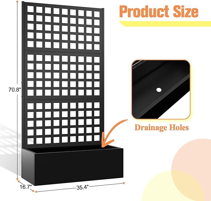 - Space-Efficient Design: Combining a planter box with a trellis, this product offers a space-saving solution ideal for gardening in limited spaces, allowing you to create a beautiful vertical garden even in small areas.