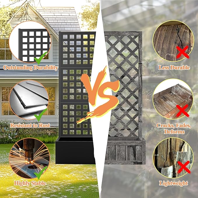 - Versatile Outdoor Solution: This metal planter and trellis combo serves multiple purposes, functioning as a raised garden bed, a flower trellis, and an outdoor privacy screen, making it a versatile addition to any garden.