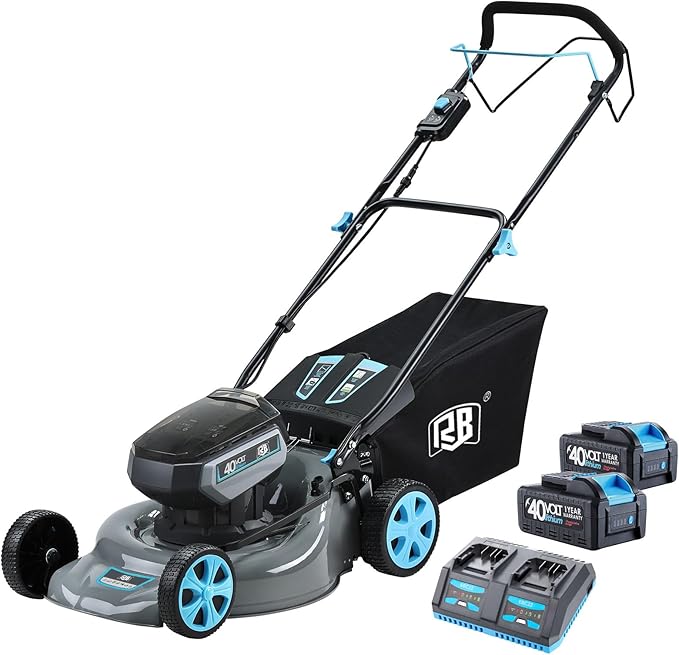 RB 80V Battery Power Lawn Mower 21IN Cordless 7 Cutting Heights Adjustable Lawnmower Brushless Motor Low Noise 4 in 1 Push Mower with Fast Charger and 2 x40V 4.0AH Battery
