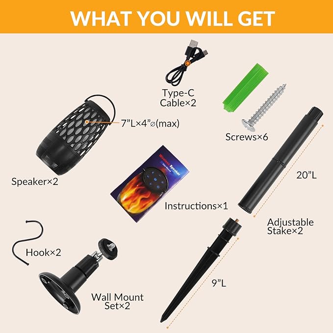 - 【Torch Speaker Purchase Service】Speakers offer a no-worry 24-month New Replacement Exchange or FULLY REFUND for any product quality issues to these outdoor lantern speakers. We will always stand behind you and reslove your problems within 24 hours.
