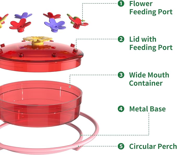 - Maintenance and Longevity Tips: The decorative flower design useful attracts hummingbirds, but outdoor exposure can cause wear over time. Regular cleaning of the flowers is recommended to maintain optimal performance. Replacement flower parts are available (search ASIN [B0CTSSFZXS]) to keep your feeder in great condition for years to come
