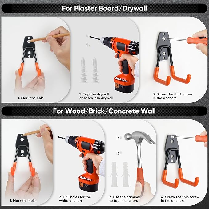 - Effortless Installation: We know many customers struggle with incorrect installation locations or want to move their garage hooks but often find themselves short on screws. That’s why Nacial provides ample screw sets—our 16-hook set includes 3*30 screws, 18-hook set features 3*34 screws. Each garage hook comes with 3 types of screws, and with just a drill or screwdriver, you can effortlessly install them on drywall, wood, concrete, or brick walls. Enjoy quick and easy organization with Nacial!