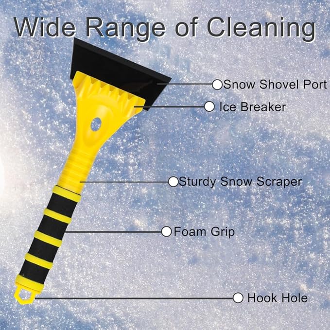 - 【Wide Application】This ice scraper is mainly used for windshields and windows of cars, small trucks, etc. It also can be used to clear snow from motorcycles, bicycles, etc. It is a great helper for shoveling snow in winter