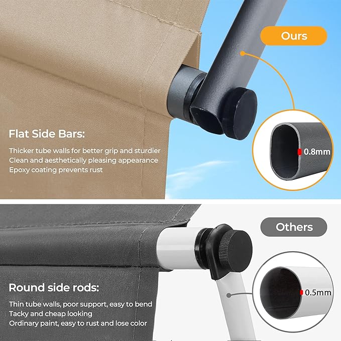 - Larger shading area: Compared to the traditional 120cm side rails in the market, our side rails are extended to 150cm, so you can get more shade. Our retractable patio awnings can easily reduce the room temperature by 2°C, which is not only energy efficient, but also won't block your view.