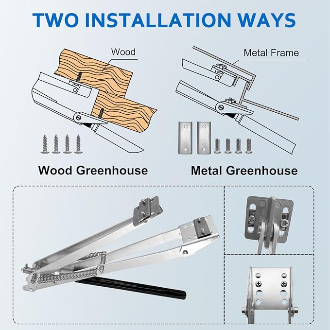 - Double Spring Design: Compared with the single spring vent, the double spring greenhouse window opener has stronger thrust force, more solid, and much durable.