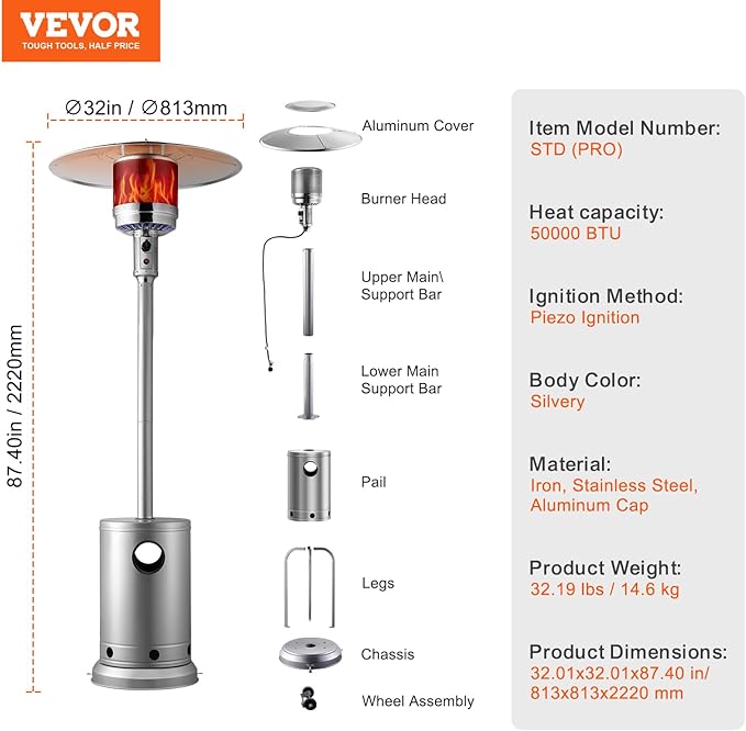 - Durable Build: Crafted from premium double-layer 304 stainless steel, it’s built to withstand harsh weather conditions like rain and snow, protecting the heater from warping and extending its lifespan.