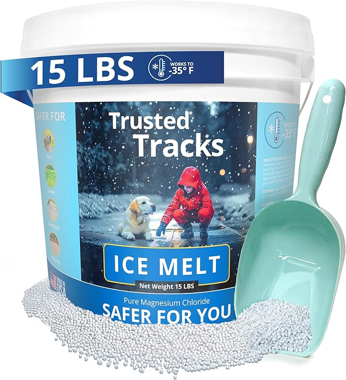 Ice Melt, Pet Safe Ice Melt, 15 LBS Premium Snow Melter, Pure Magnesium Chloride, Safer for Pets, Concrete, Effective to -35 F, 15 lb