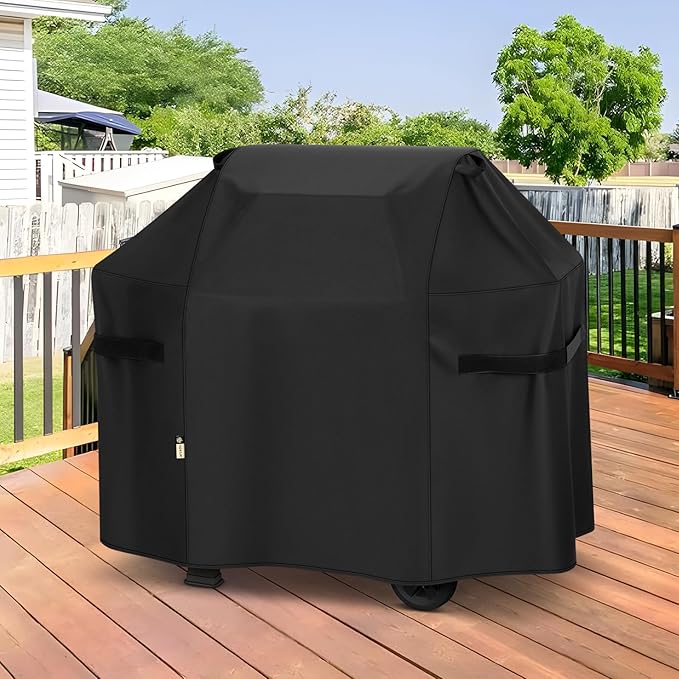 - Heavy Duty Waterproof Grill Cover : This grill cover for outdoor grill is designed to protect your grill from the elements. It is made from premium polyester fabric with a vinyl coating, safeguarding your grill and keeping your gas grill dry and clean year-round, ultimately extending its lifespan
