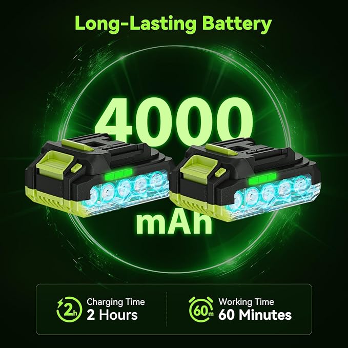 - Dual 20V Long-Lasting Batteries: Powered by two 20V 1.8Ah lithium batteries with overload and temperature protection, this hedge shears cordless ensures extended use. Each battery runs for over 30 minutes, allowing you to alternate them for continuous trimming of large shrubs or long hedge shearing projects