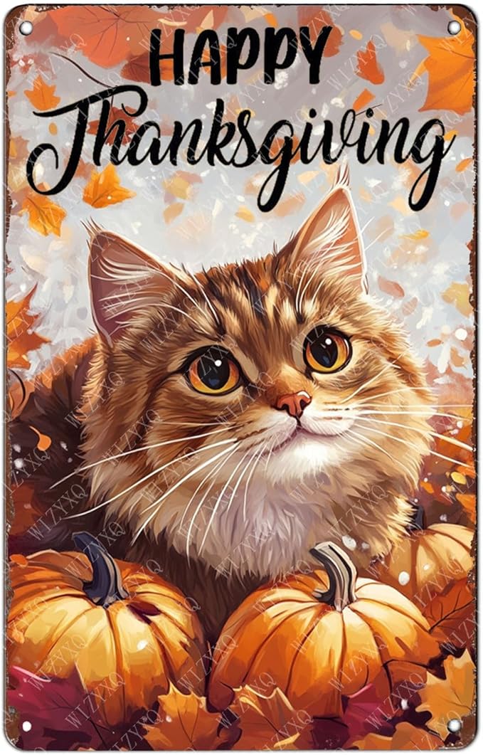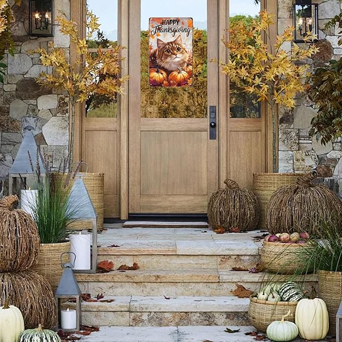 Metal Signs Happy Thanksgiving Tin Signs Aluminum Sign for Living Room Bedroom Bar Cafe Yard Garden Office Wall Decor 12×8 Inch