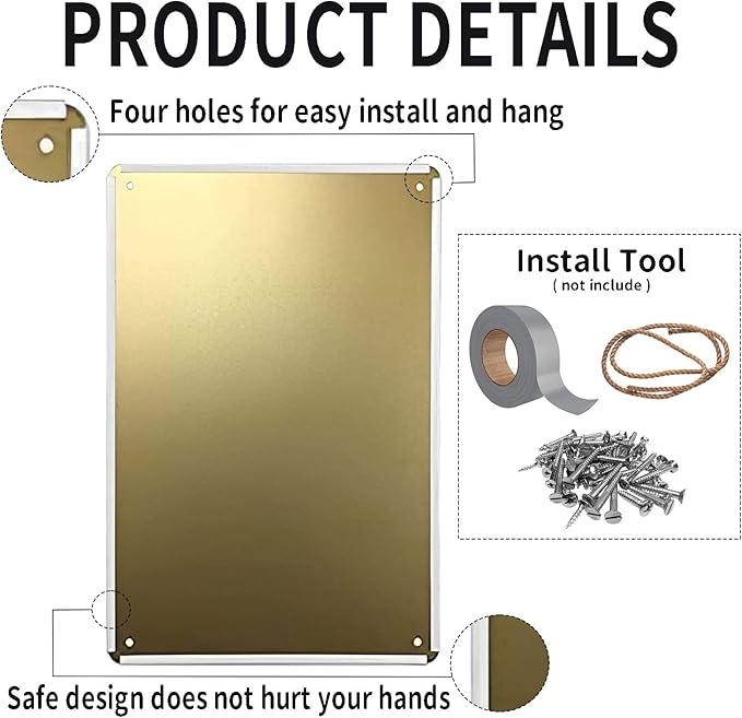 - Material: Using high quality aluminum material metal signs.The sign is waterproof and sunproof,Not harmful to hands and not easily bent.The design of four holes facilitates installation and hang