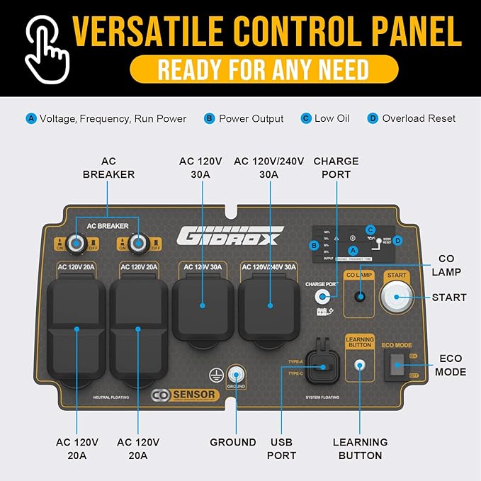 - Inverter Tech with Powerful Engine – The Gidrox 7500D delivers clean pure power with less than 3% THD — safe for laptops, medical devices, phones, and other sensitive electronics.Its powerful 317cc 4-stroke OHV engine ensures consistent performance, improved fuel efficiency, and reduced emissions for both home and commercial use.