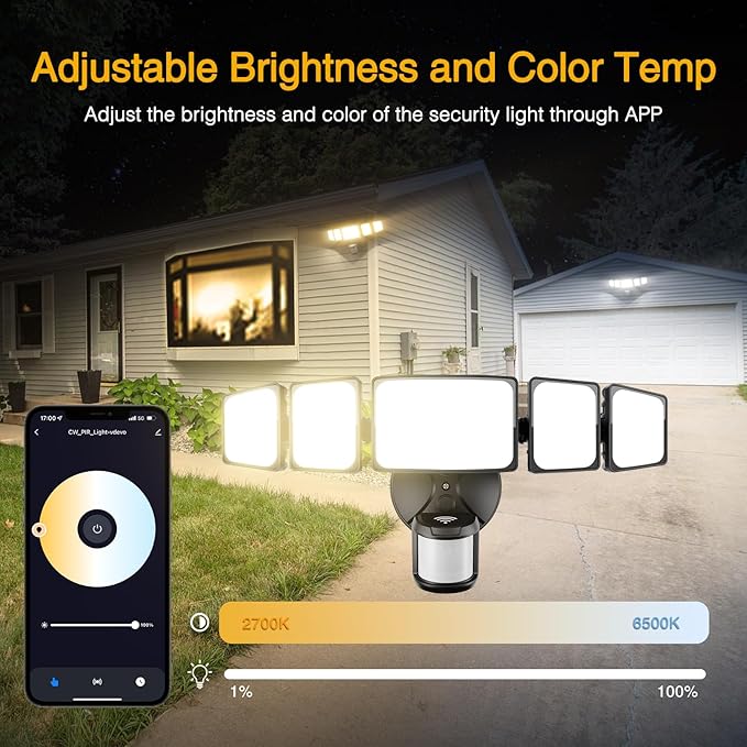 - WiFi APP & Voice Control: The Smart Outdoor Lights Motion Sensor (NOSOLAR!) support both APP & Voice Control. Connect via 2.4GHz WiFi, use Alexa or Google Assistant Voice activated your floodlight. Open the APP "Onforu", personalize it in color temperature, motion sensor distance, motion off delay, step-less dimming, weak light brightness, motion sensor linkage, group control, etc