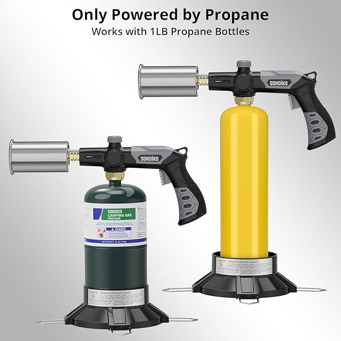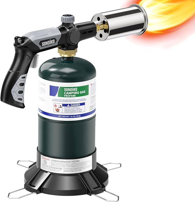 Sondiko Powerful Grill & Cooking Propane Torch L8010 with Gas Cylinder Stand Base, Sous Vide, Campfire Starter, Adjustable Wood Torch Burner for Searing Steak, BBQ, Welding (Propane Tank Not Included)