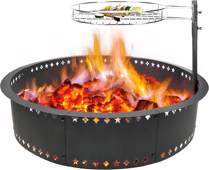 Fire Pit Ring with Grill 36" Fire Ring for Outside Fire Pit,Large DIY Fire Rings for Outside Wood Burning Smokeless Firepit Insert Liner Above/In-Ground Camping Firepit Ring for Outdoor Picnic BBQ
