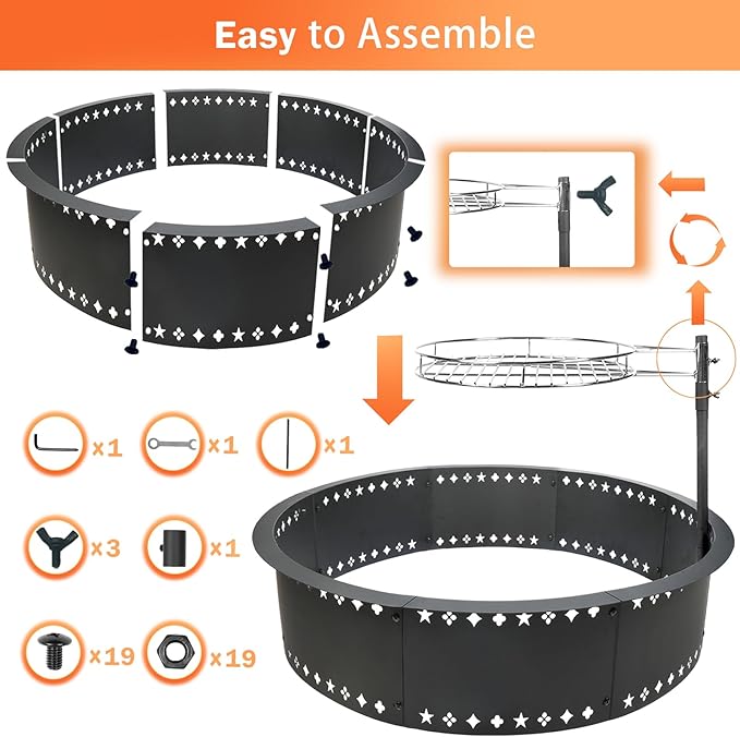 - 【Easy to Use & Install】Our clearance outdoor fire pit ring is very classic,simple and practical.So you can assemble it easily in some minutes and install firmly with the screws as following the instructions.Note:the unit doesn't include bottom.