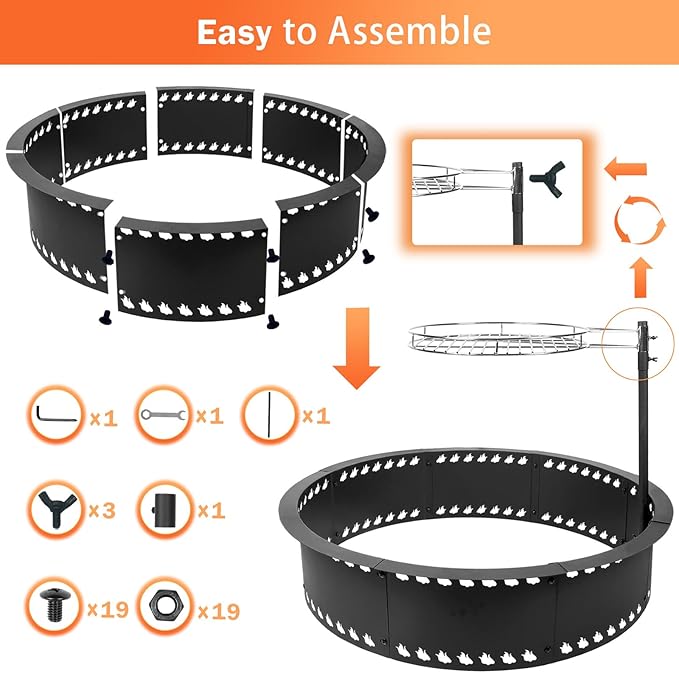 - 【Easy to Use & Install】Our clearance outdoor fire pit ring is very classic,simple and practical.So you can assemble it easily in some minutes and install firmly with the screws as following the instructions.Note:the unit doesn't include bottom.