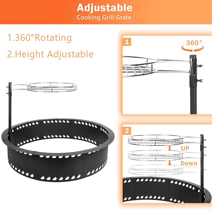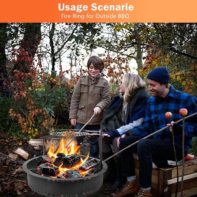 - 【Multi-Enjoyment】2 in 1 campfire ring with grill grate offer you a convenient and comfortable way to own a cozy bonfire Picnic BBQ and party in your patio, garden or while camping.