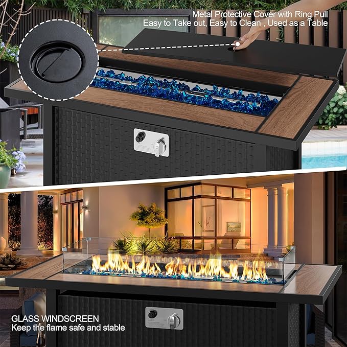- 2 in 1 Patio Table: Equipped with a delicate lid, this table can be used in multiple ways. Remove the lid and turn the ignition on, you would get a perfect fire pit table heating your yard. With the lid on, you can put drinks and food on and get a wonderful table