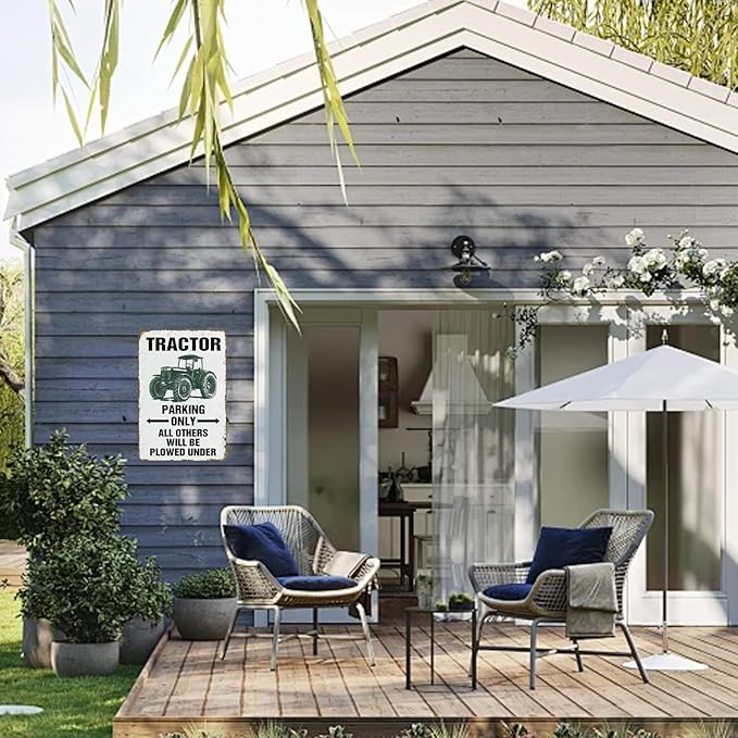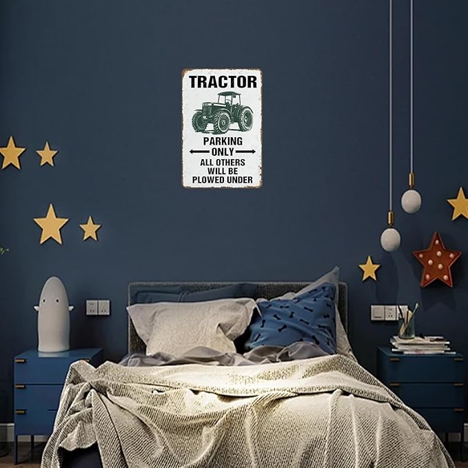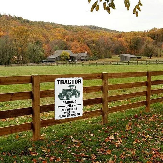 Vintage Parking Only All Others Will Be Plowed Under Metal Tin Sign Tractor Crossing Sign for Men Cave Farm Outdoor Garage 12×8 Inch