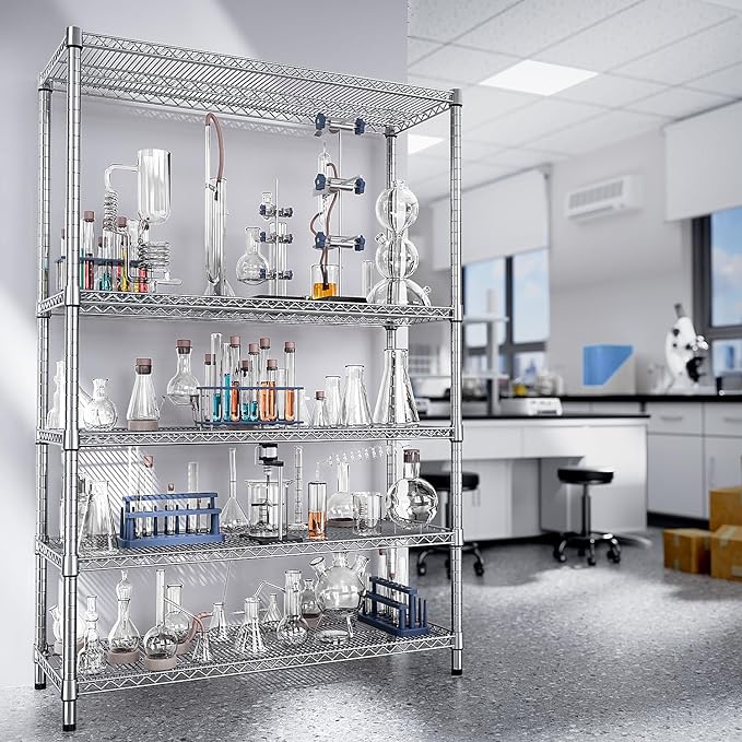 IZEUK 4250 LBS Garage Shelving Wide Storage Shelves 5 Tier Metal Shelves Heavy Duty Adjustable Utility Shelf Rack Chrome 17.7" D x 47.2" W x 70.4" H