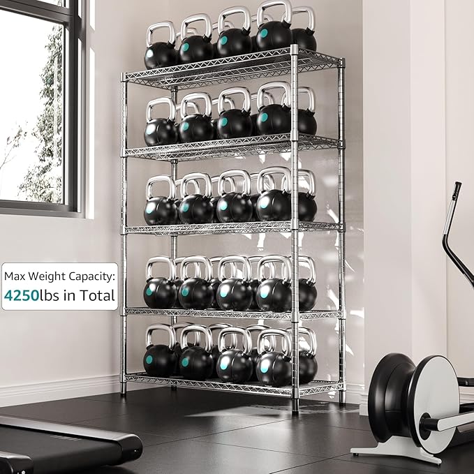 - COMMERCIAL GRADE HEAVY DUTY: Craft from study high-quality carbon steel and 25.4mm metal pipes, each shelving unit has a maximum capacity of 850 LBS on leveling feet, with a total capacity of 4250 LBs