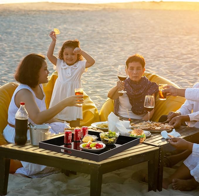 22×22 inches Oversized Black Acrylic Ottoman Tray Extra Large Decorative Tray Spill-Proof Serving Trays with Handles King-Size Safe Edge Organizer for Coffee Table Countertop Breakfast