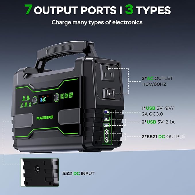 - WHAT YOU GET: 1*MARBERO M155SL30 Portable Power Station, 1*15V/2A Power Adapter, 1*Cigarette Lighter Adapter, 1 x MARBERO 30W Solar Panel, 1*Car Charger, 1*User Manual