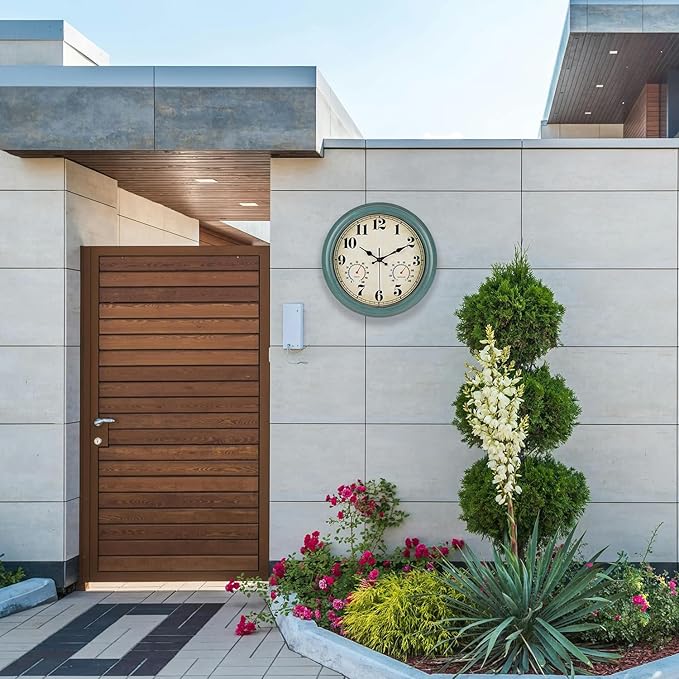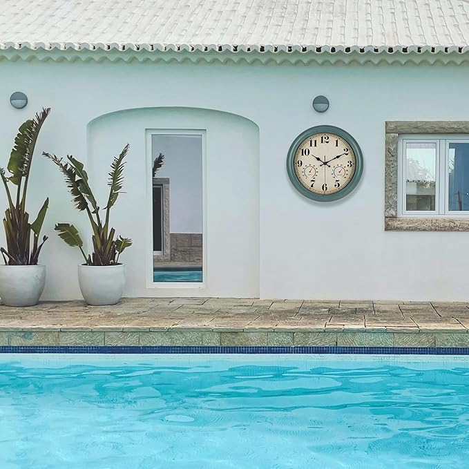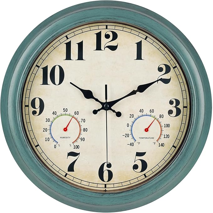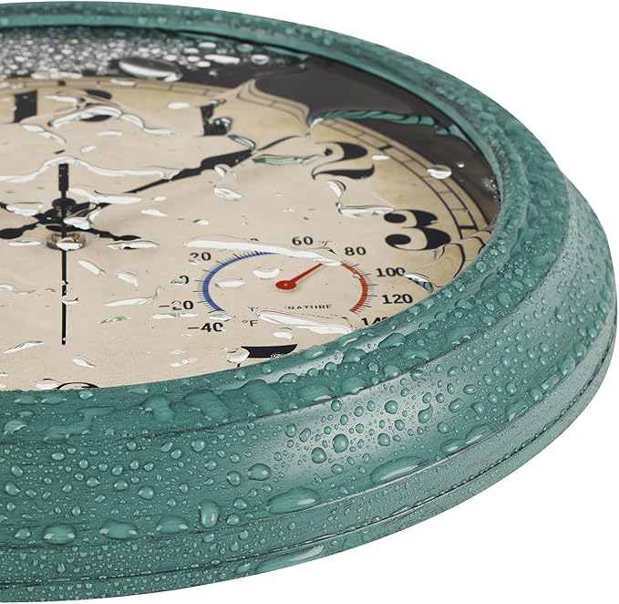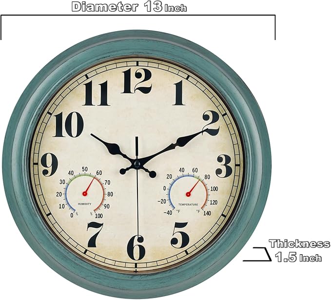 zyzamay 13 Inch Outdoor Clock with Thermometer and Hygrometer, Waterproof and Silent, Large Easy-to-Read Numbers, Ideal for Bedroom,Office,Living Room,Porch,Garden,Pool(Green)