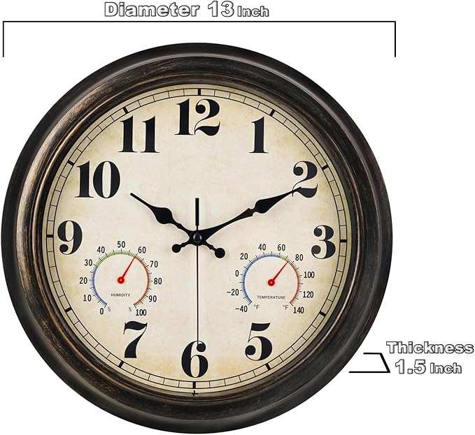 - Durable and Waterproof: Waterproof Design: Designed to withstand humid conditions, this clock is ideal for shaded outdoor spaces like porches, gardens, and poolside, ensuring long-lasting performance