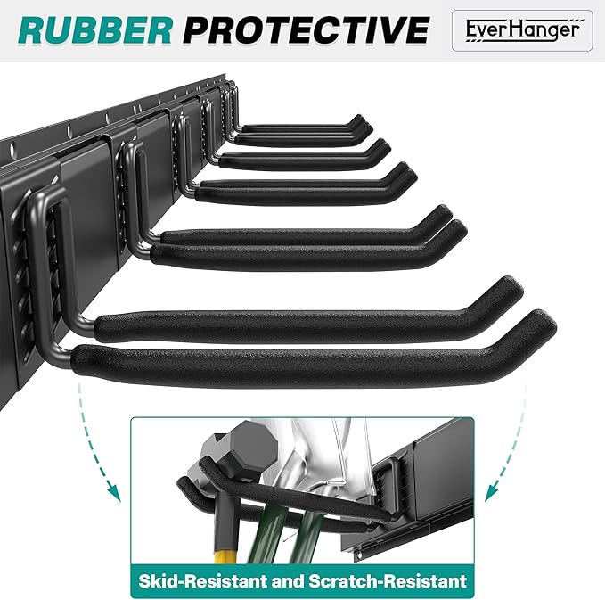 - Heavy-Duty & Durable: Built with high-quality steel and capable of holding up to 900 lbs. The powder-coated finish resists rust, while rubber-coated sleeves protect both hooks and tools for long-lasting durability