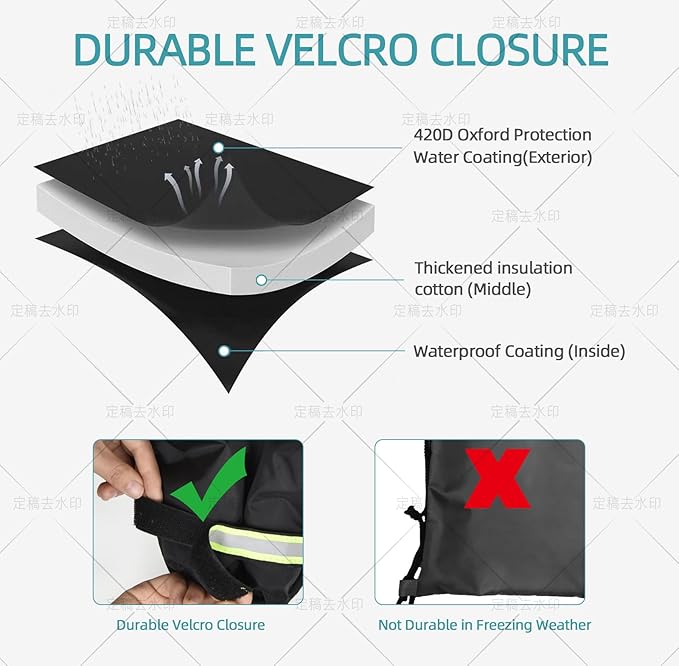 - ·Proven Cold and Waterproof Waterial:The faucet covers for winterare made of three-layer design with high-quality anti-freeze and waterproof material. The surface is 210D Oxford protective waterproof coating to prevent rainweather. The middle layer is filled with Acryfiber anti-freeze insulation material. The inner layer uses Oxford cloth again to achieve multiple protection. It can effectively protect your outdoor water spigotfrom exposure to sun, rain, snow and cold air