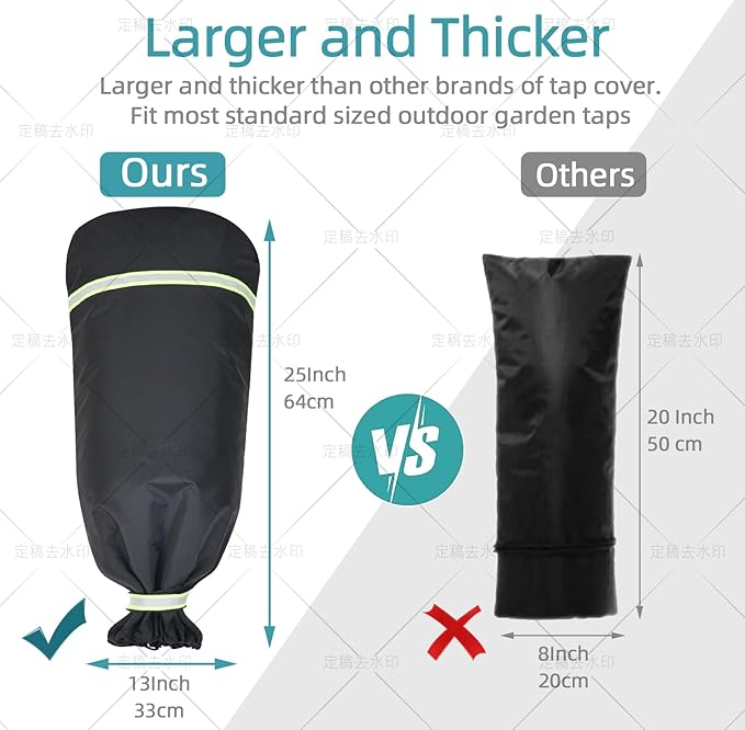 - ·Universal Size:The outdoor faucet cover for winter measures 13"W·25"H.It fits for all types of faucets,such as garden spigots,hose bibs,water tap,it gives your outside faucet cover freeze protection, prevent expensive repair costs