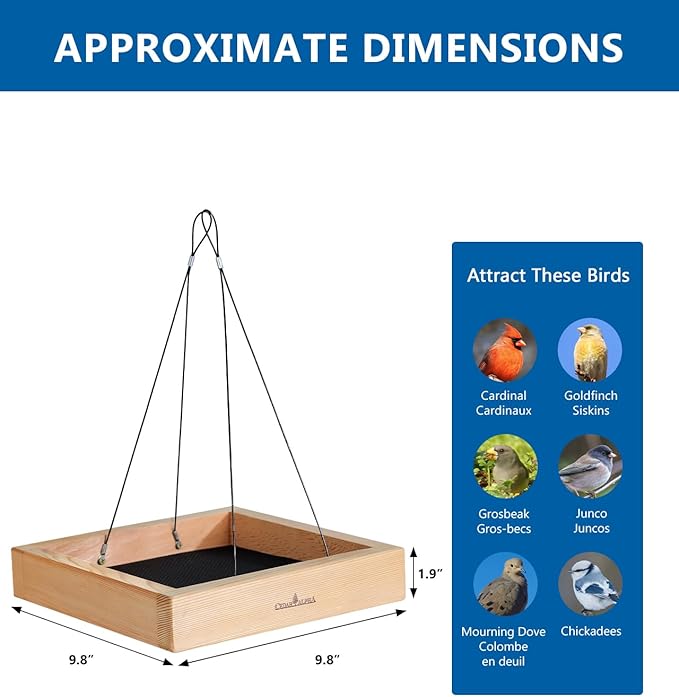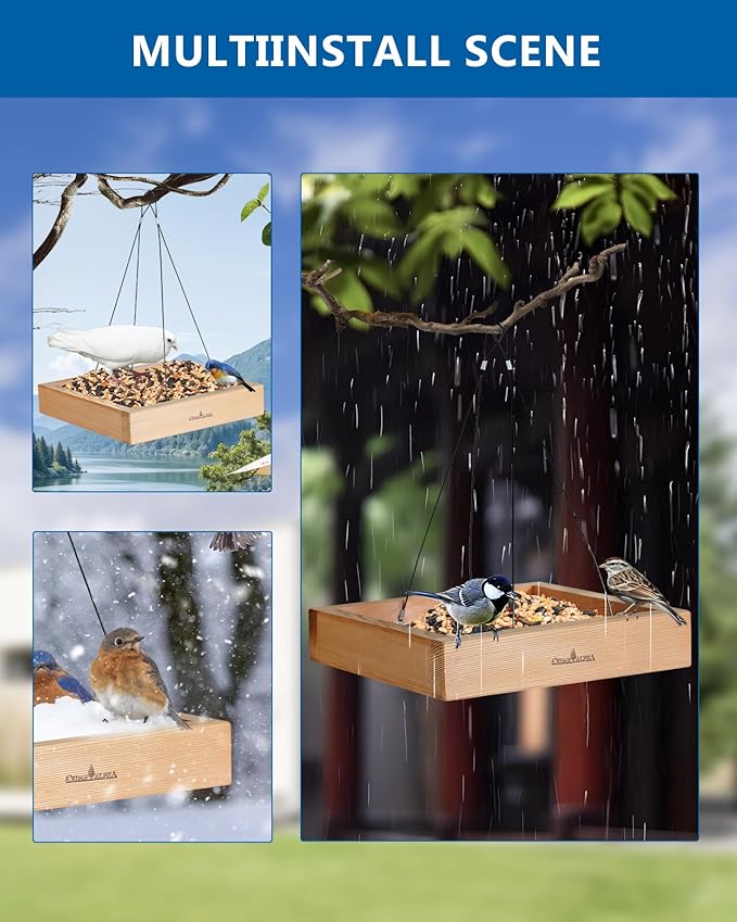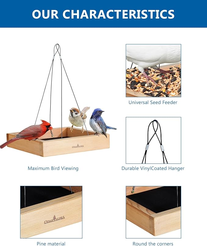 - Tray Bird Feeder Made of High Quality of the Cedar Wood, Polishing by hand, Smooth Without Burr.