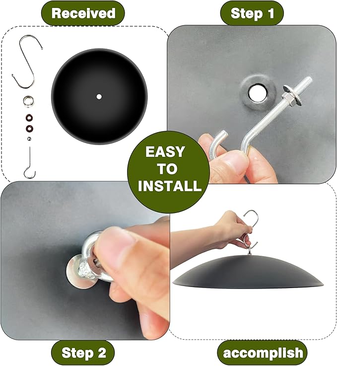 - 【13 Inch Dome Cover】Fits most hummingbird feeders, easy to install, just hang it on a shepherd's hook or tree trunk, the feeder will hang below the dome cover, which protects your precious bird food! The curved design effectively blocks rain and leaves from entering the inside of the bird feeder.
