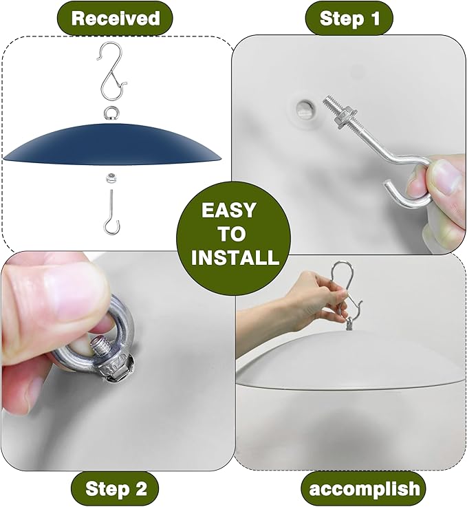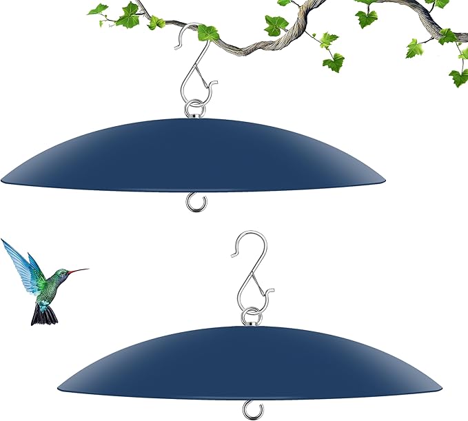 - 【13 Inch Dome Cover】Fits most hummingbird feeders, easy to install, just hang it on a shepherd's hook or tree trunk, the feeder will hang below the dome cover, which protects your precious bird food! The curved design effectively blocks rain and leaves from entering the inside of the bird feeder.