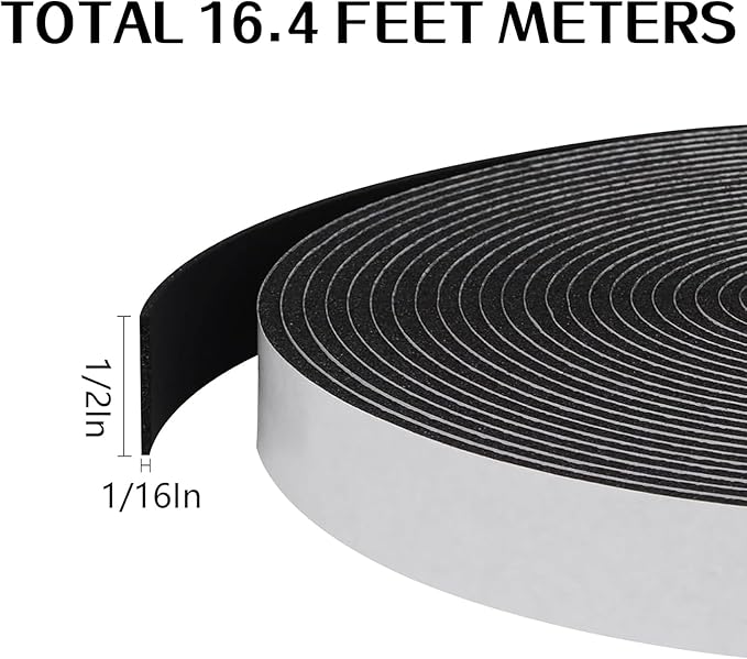 Storystore Foam Insulation Tape Self Adhesive, 1/2In x 1/16In x 16.4Ft Weather Stripping for Doors and Windows, Sound Proof Soundproofing Door Seal, Weatherstrip, Air Conditioning Seal Strip